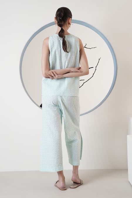 Green Cotton Embroidery Round Neck Sea Floral Embellished Pant Set