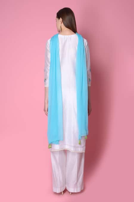 Buy_Surabhi Arya_White Kurta And Pant Silk Chanderi Dupatta Chiffon Set _Online_at_Aza_Fashions