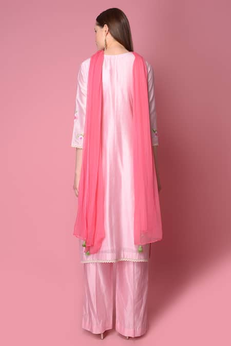 Pink Kurta And Pant Silk Chanderi Dupatta Chiffon Set