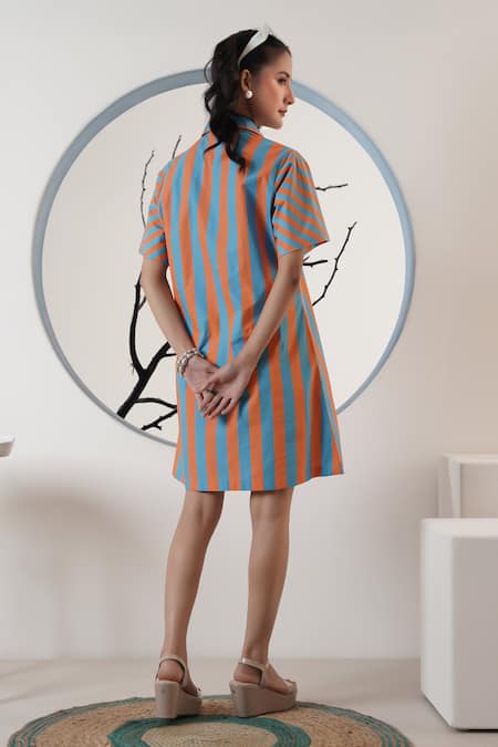 Buy_Surabhi Arya_Orange Poplin Bows Collared Striped Dress _Online_at_Aza_Fashions
