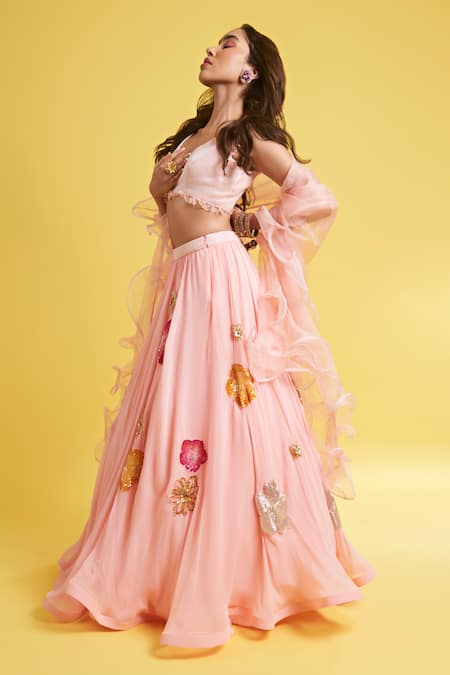 Placement hand embroidery with chhita and cutdana, Ruffled edges for added volume