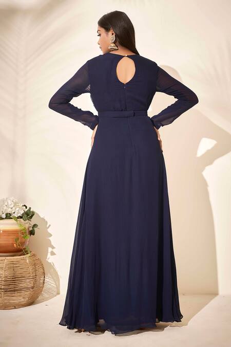 Blue Georgette Lining Shantoon Bead And Sequin Round Draped Tunic
