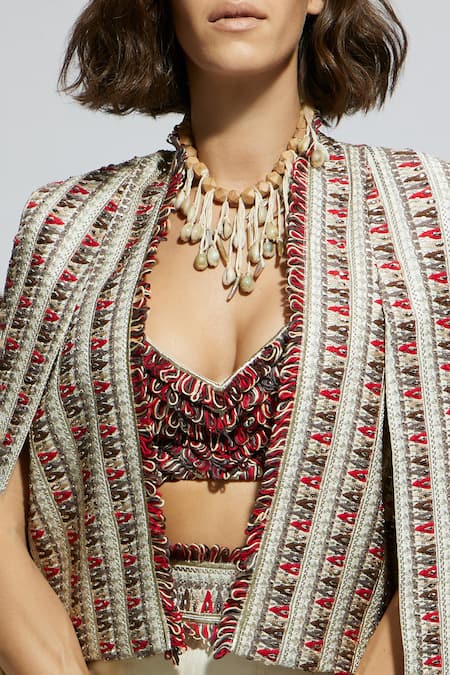 Ivory Aztec Tribe Embroidered Cape Jacket