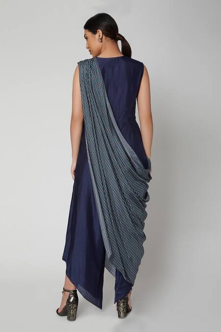 Blue Russian Silk Round Draped Jumpsuit
