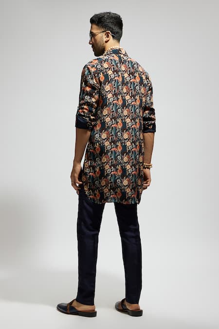Shop_Sva By Sonam & Paras Modi_Blue Crepe Embroidery Floral Blossom Pattern Kurta_Online_at_Aza_Fashions