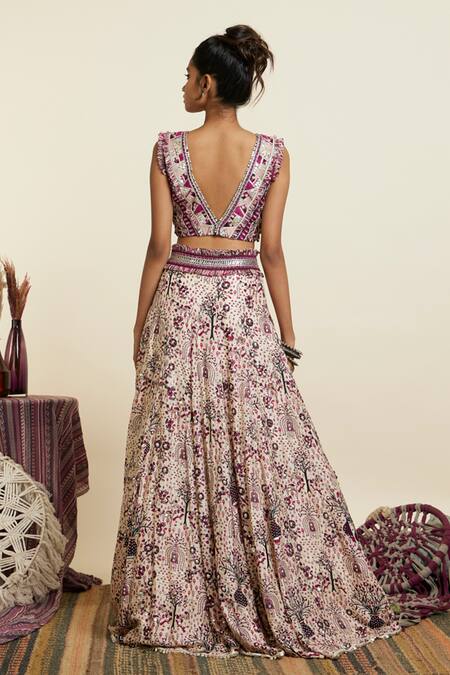 Purple Crepe Print Forest Bloom V Embellished Lehenga With Blouse