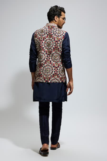 Blue sleeveless bundi featuring intricate mandala embroidery