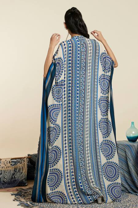 Blue Crepe Woven And Embellished Moroccan Pattern Round Neck & Kaftan