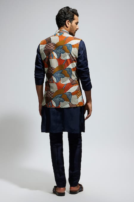 Multi color sleeveless bundi featuring all over foliage embroidery