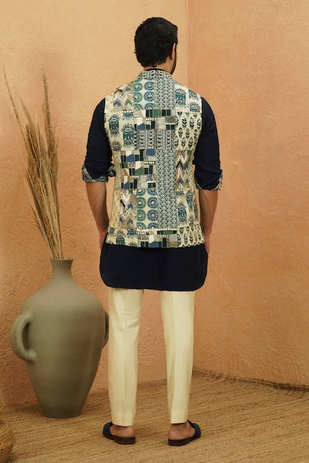 Intricate embellishments throughout the bundi, Unique patterned design on the fabric