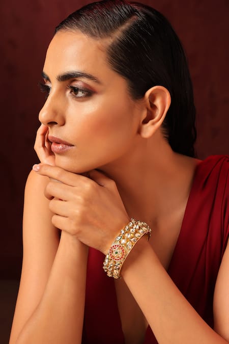 Red Imitation Diamonds Floral Kundan Embellished Kada