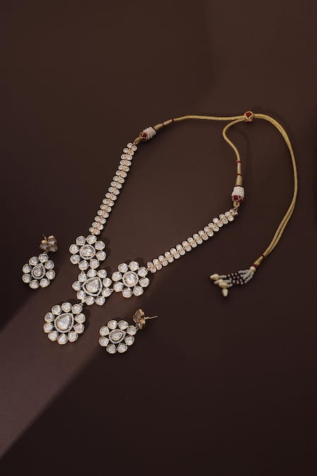Buy_Swabhimann_Rose Gold Zari Floral Polki Necklace Set_Online_at_Aza_Fashions