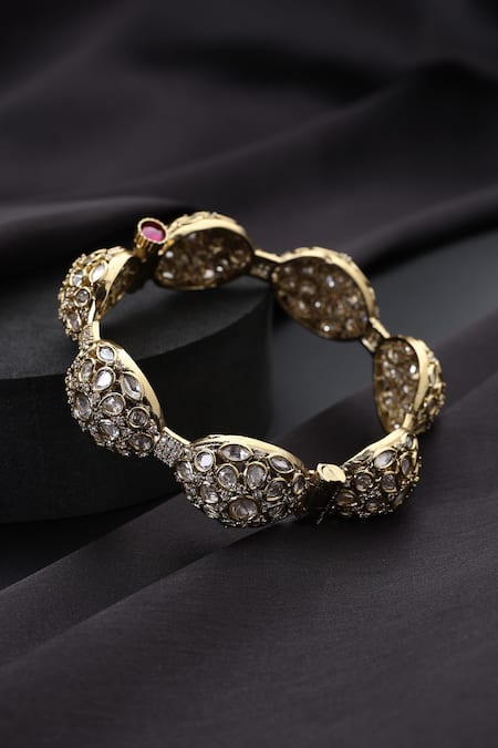 A gold-plated brass kada featuring polki embellishments and a screw closure.