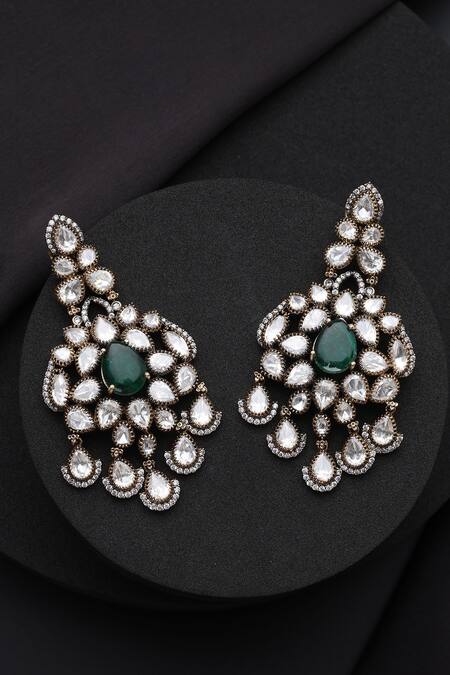 Buy_Swabhimann_Green Stones Victorian Polki Dangler Earrings_Online_at_Aza_Fashions