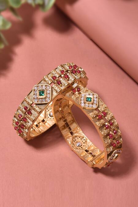 Buy_Swabhimann_Multi Color Stones Gold Embellished Bangles_Online_at_Aza_Fashions