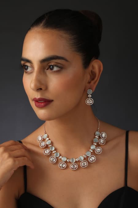 Blue Diamonds, Stones Rose Gold Uncut Polki Necklace Set