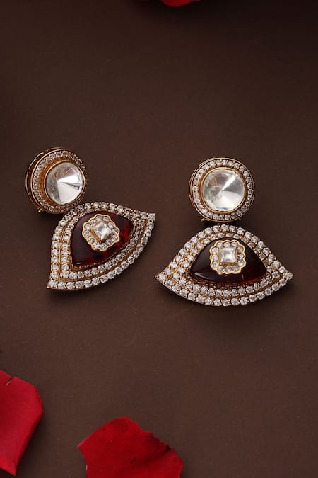 Red Stones, Faux Diamonds Kundan And Embellished Danglers