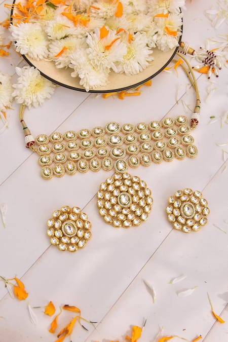 Buy_Swabhimann_Gold Plated Diamonds, Stones Kundan Embellished Choker Set _Online_at_Aza_Fashions
