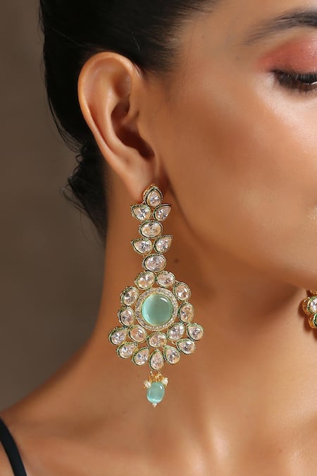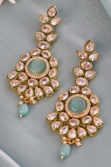Kundan embellished earrings featuring a mix of blue, green, and silver colors