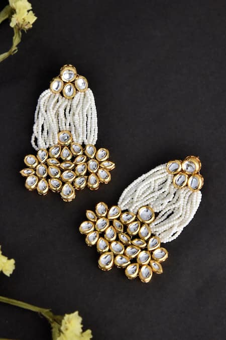 Gold tone dangler earrings featuring kundan and pearl embellishments
