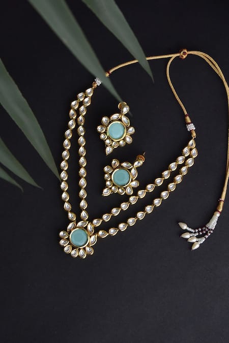Buy_Swabhimann_Green Diamonds, Stones Kundan Work Necklace Set _Online_at_Aza_Fashions
