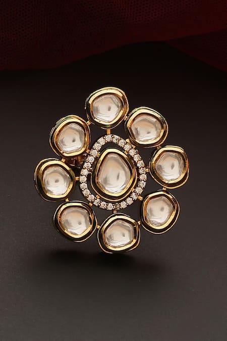 Shop_Swabhimann_Gold Plated Stones Kundan Work Ring _Online_at_Aza_Fashions