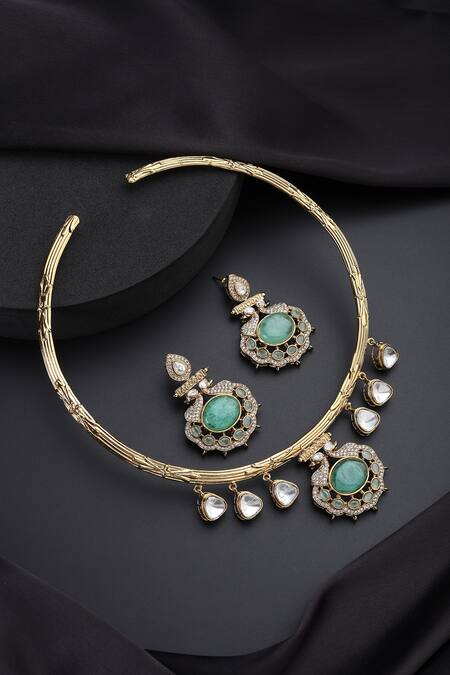 Swabhimann_Mint Polki Hasli Necklace Set_Online_at_Aza_Fashions