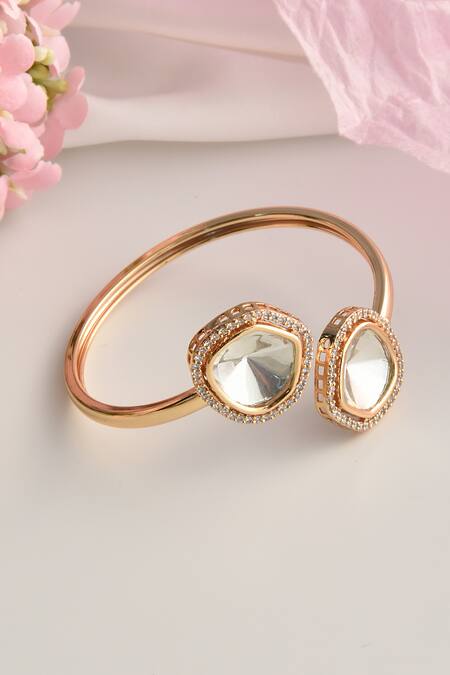 Gold Plated Imitation Diamonds Moissanite Polki Embellished Bracelet