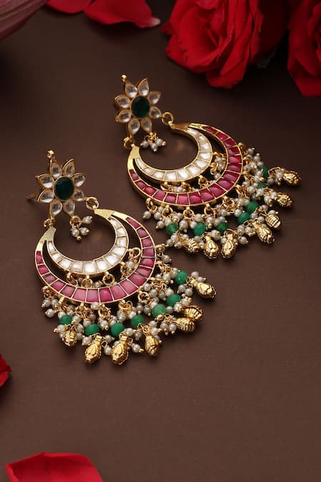 Buy_Swabhimann_Multi Color Stones, Pearls, Beads Multicolor Kundan Embellished Chandbalis _Online_at_Aza_Fashions