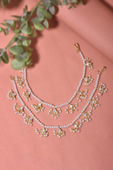 Kundan and pearl embellishments, Pearl drop tassel detailing