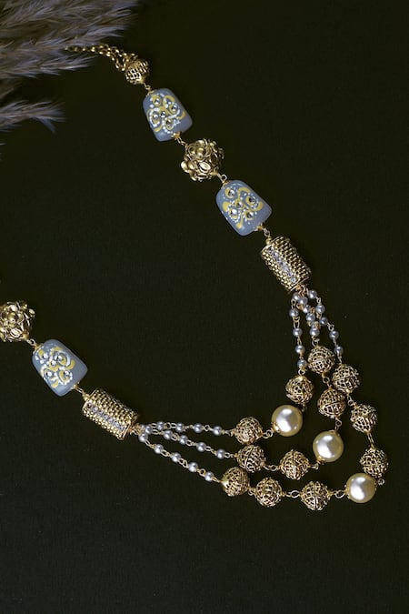 Buy_Swabhimann_Gold Plated Pearl Embellished Layered Necklace _at_Aza_Fashions