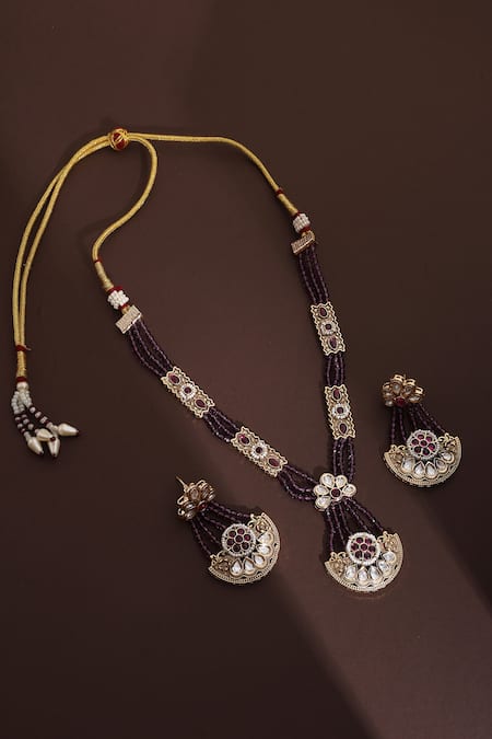 Purple Beads, Zari Polki Beaded Necklace Set