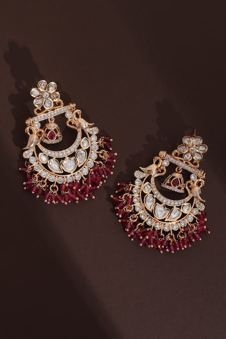 Buy_Swabhimann_Red Diamonds, Rhinestones Polki Blossom Chandbali Earrings _Online_at_Aza_Fashions