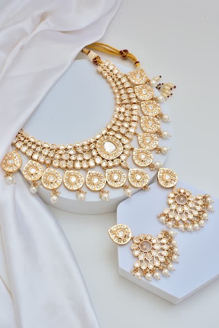 Adjustable dori closure on necklace, Push back closure on earrings, Intricate polki stone embellishments
