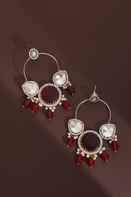 Buy_Swabhimann_Gold Plated Pearls, Stones, Beads, Piping Polki Embellished Chandbalis _Online_at_Aza_Fashions