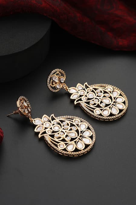 Gold Plated Diamonds, Stones Polki Studded Floral Vine Chandbali Earrings