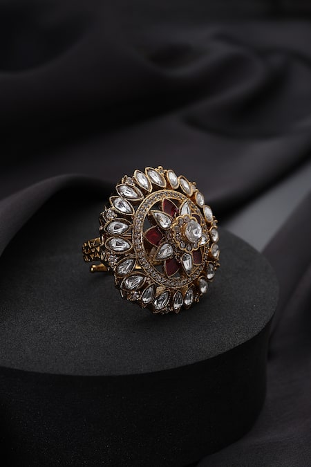 Buy_Swabhimann_Gold Plated Stones Red Polki Adjustable Ring _at_Aza_Fashions