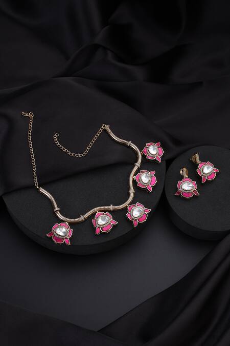 Gold Plated Stones Ruby And Polki Hasli Necklace Set