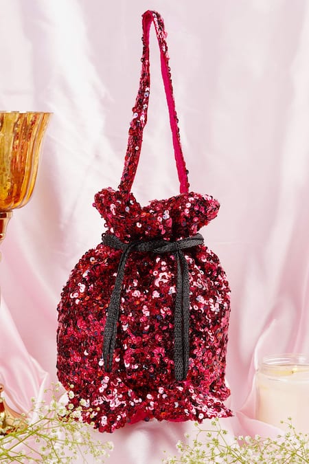 Maroon potli bag featuring tonal sequin embellishments with a drawstring closure