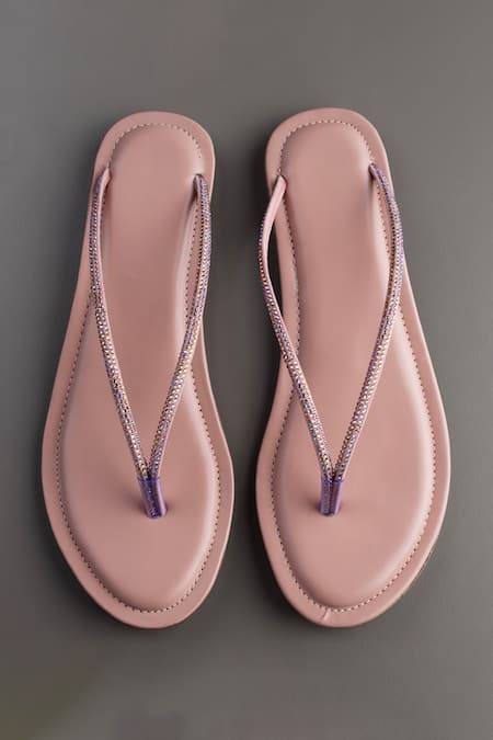 Pink slippers with swarovski embellishment on strap & split toe detailing.