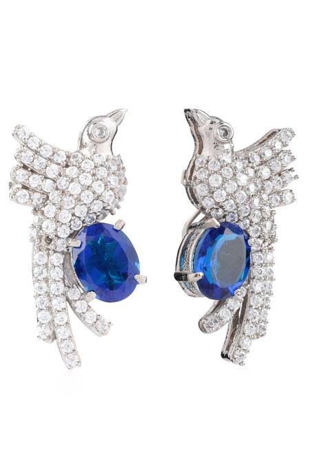 Buy_Soigne Atelier_Blue Embellished Swarovski Zircon Bird Earrings_at_Aza_Fashions