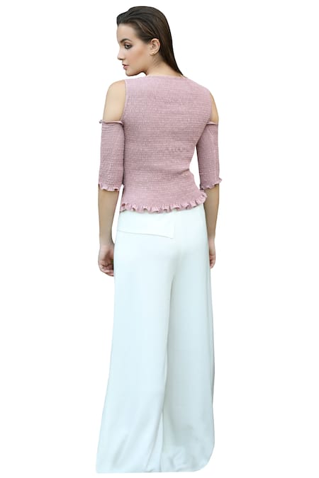 Buy_Swatee Singh_Pink Crepe Round Cold Shoulder Top _Online_at_Aza_Fashions