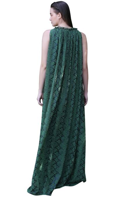 Buy_Swatee Singh_Green Chiffon Halter Printed Gown_at_Aza_Fashions