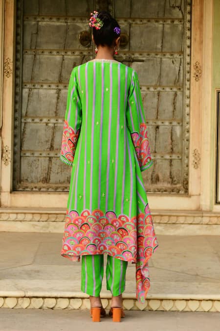 Green Silk Embroidery Gota Patti Juhi Asymmetrical Kurta And Pant Set