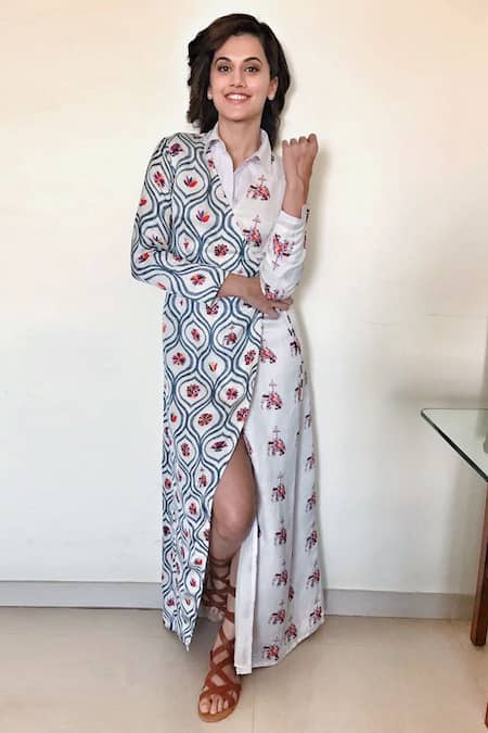Shop_Swati Vijaivargie_White V Neck Printed Wrap Dress _at_Aza_Fashions