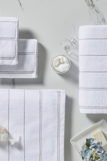 Shop_Houmn_White 100% Cotton Weaves Symmetry Terry Towel Set_at_Aza_Fashions