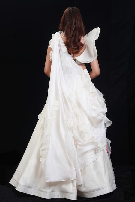 Buy_Archana Kochhar_White Lehenga And Blouse Raw Silk Dupatta & Synchronized Scintillation Draped _at_Aza_Fashions