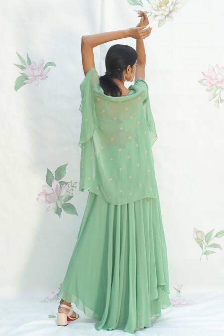 Buy_Taavare_Green Georgette Bustier Square, Jacket Open Embroidered And Palazzo Set_Online_at_Aza_Fashions