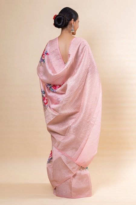 Buy_Taba Kashi By Artika Shah_Pink Purna Silk Print Bloom Saree With Unstitched Blouse Fabric _Online_at_Aza_Fashions