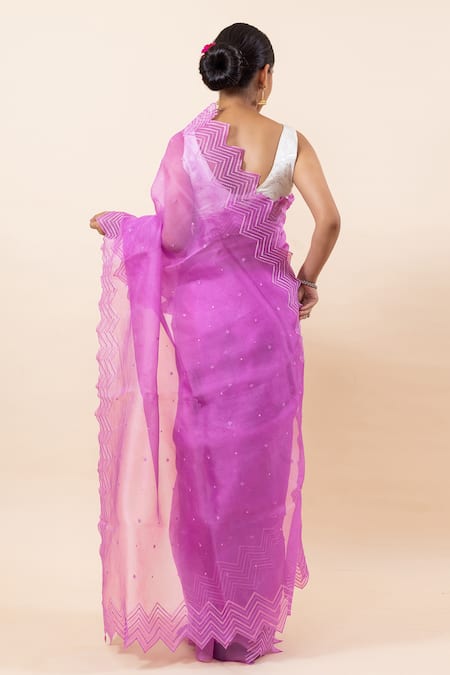 Purple Kora Scalloped Saree With Running Blouse